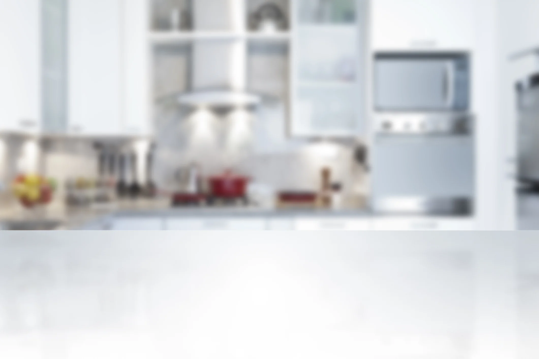 Shaker door design White kitchen with sintered stone worktop makes the place more spacious & welcoming